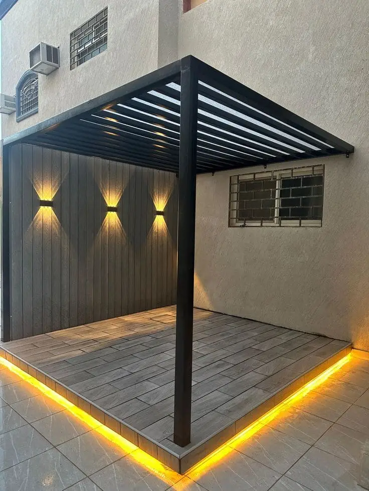 برجولات خشبية أو معدنية – للحوش والجلسات الكبيرة، مع تصميمات متنوعة تضيف جمالية وفخامة للمكان.